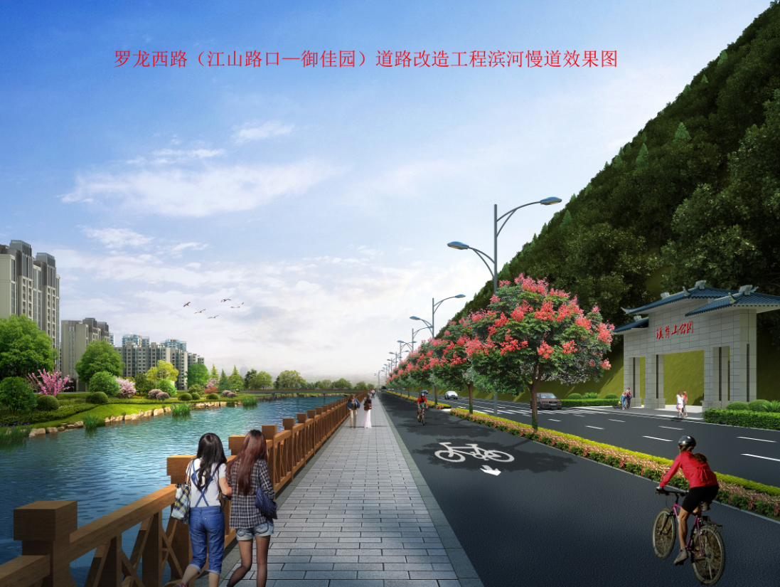 羅龍西路是連接龍巖西高速出入口與中心城市的唯一通道,其規(guī)劃改造范圍從紅竹山橋至御佳園路口,全長3855米,計劃將原道路拓寬至40米,實行雙向六車道,兩旁設(shè)2.5米非機動車道,并在湖二橋路口以東設(shè)640米入城單向三車道隧道連接至御佳園路口,原羅龍西路湖二橋至御佳園段將調(diào)整為出城單向車道。
