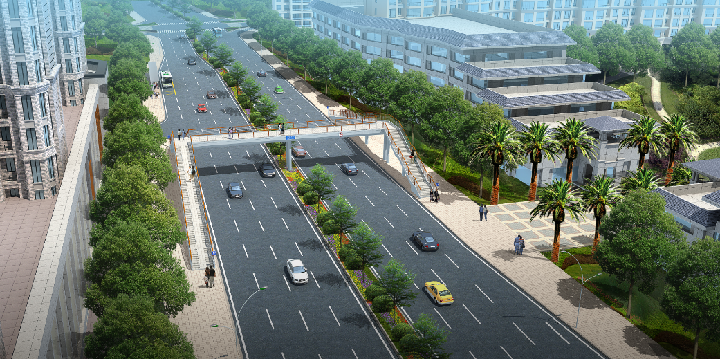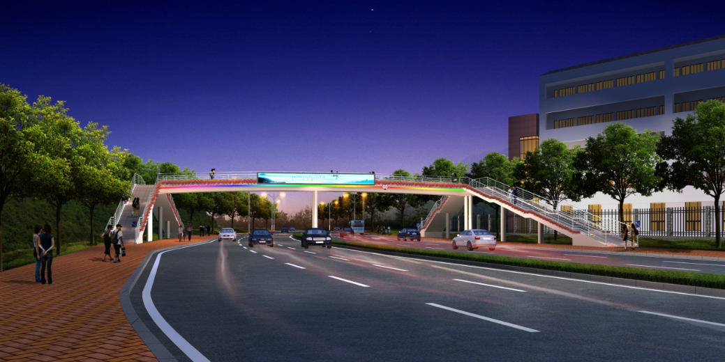 水韻華都人行天橋位于龍騰路水韻華都南側(cè),橫跨龍騰中路。橋長34.4米,寬3.6米,下部結(jié)構(gòu)采用鉆孔灌注樁和擴大基礎(chǔ),上部結(jié)構(gòu)采用鋼結(jié)構(gòu),項目總投資約400萬元。項目于2016年4月開工,8月底竣工。項目建成后,可有效保障該片區(qū)行人過街的安全,提高人們出行效率。