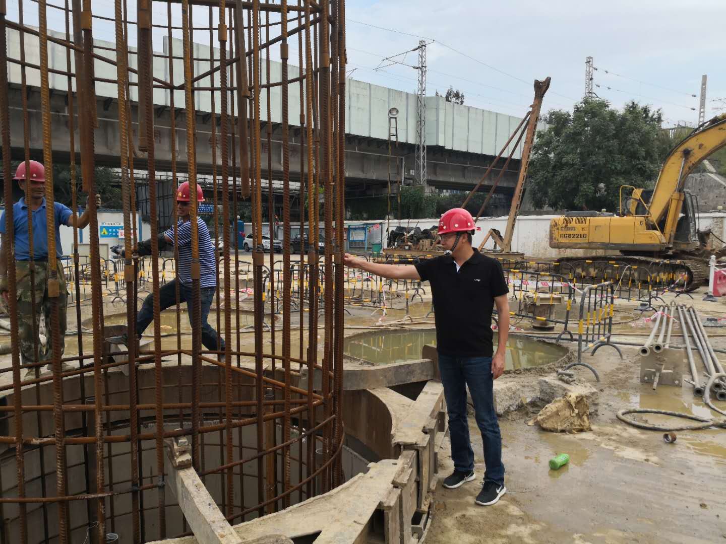 427日,在龍巖火車站片區(qū)路網(wǎng)項(xiàng)目工地,犀牛路二期正在進(jìn)行樁基、承臺(tái)和立柱施工,站前高架橋正在進(jìn)行墩柱和混凝土現(xiàn)澆梁施工,一派熱火朝天的建設(shè)場(chǎng)景39歲的龍巖國(guó)資企業(yè)干部孔華剛剛榮膺2018年“福建省勞動(dòng)模范”,從福州開完表彰會(huì)載譽(yù)歸來的顧不上休息,馬不停蹄地深入站前高架橋和犀牛路二期項(xiàng)目一線,檢查安全文明施工情況,督促項(xiàng)目施工進(jìn)度。